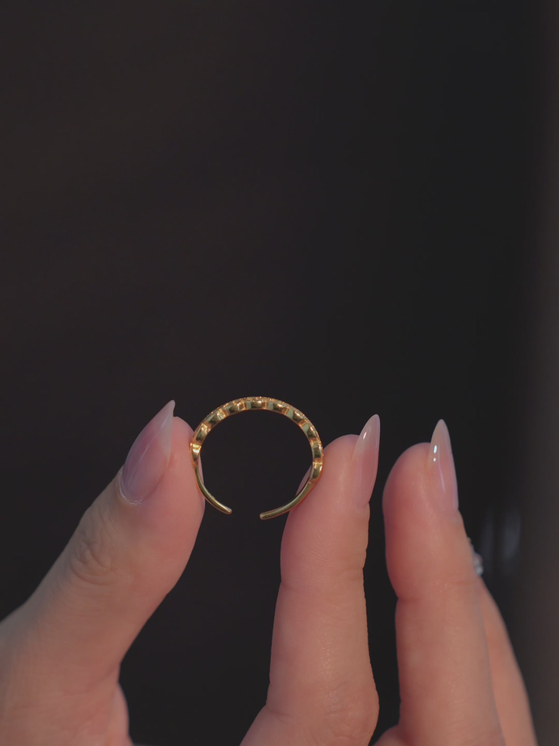 Inspired by the first light of dawn, this ring captures the quiet glow of morning. The zircon stones are arranged like soft dew drops resting on golden curves—subtle, warm, and effortlessly graceful. A delicate piece that brings lightness to your everyday styling.