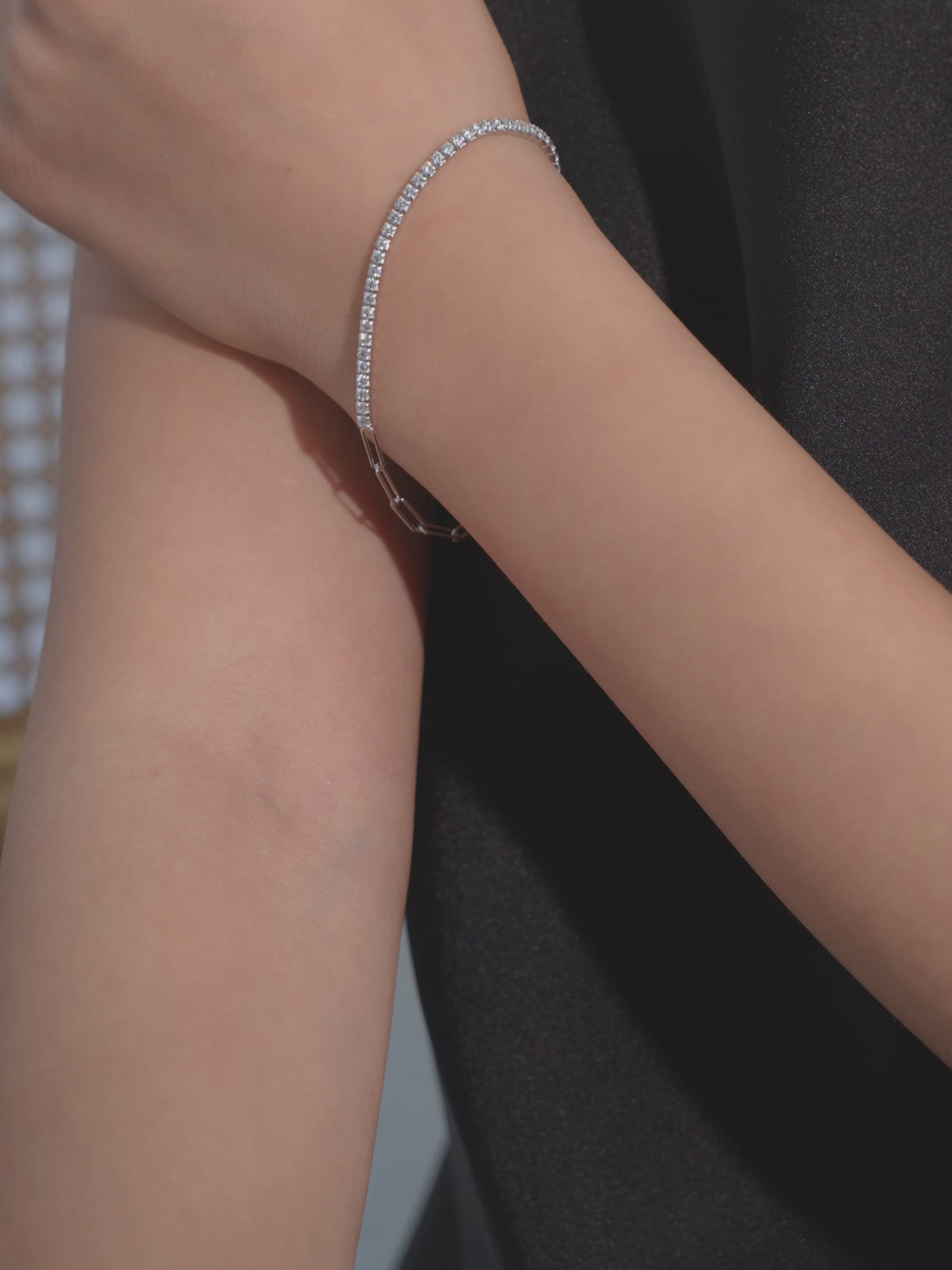 Inspired by the shift between day and night, this bracelet traces the subtle transition from brightness to calm. The front segment sparkles with pavé zirconia, while the back half features a clean minimalist chain—capturing the balance modern women carry throughout the day.