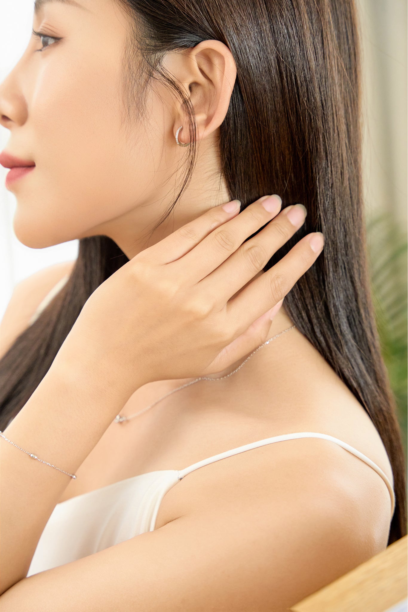 Inspired by the gentle whispers of light, these mini hoops feature a seamless loop of sparkling zircons, capturing radiance in every angle. Their minimalist silhouette and refined shine make them perfect for everyday elegance and versatile styling. Three sizes available for various occasions and layering preferences.