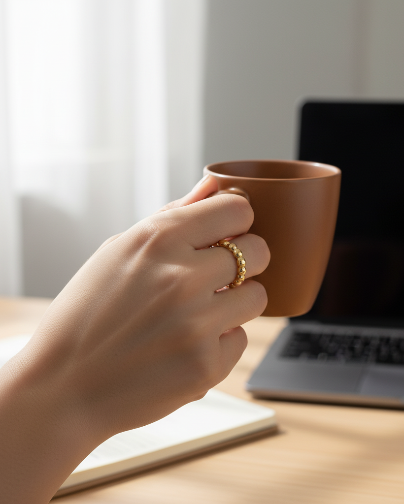 Inspired by the nostalgic charm of childhood bead jewelry, this ring also caters to modern minimalist aesthetics. A subtle nod to playfulness and sophistication.