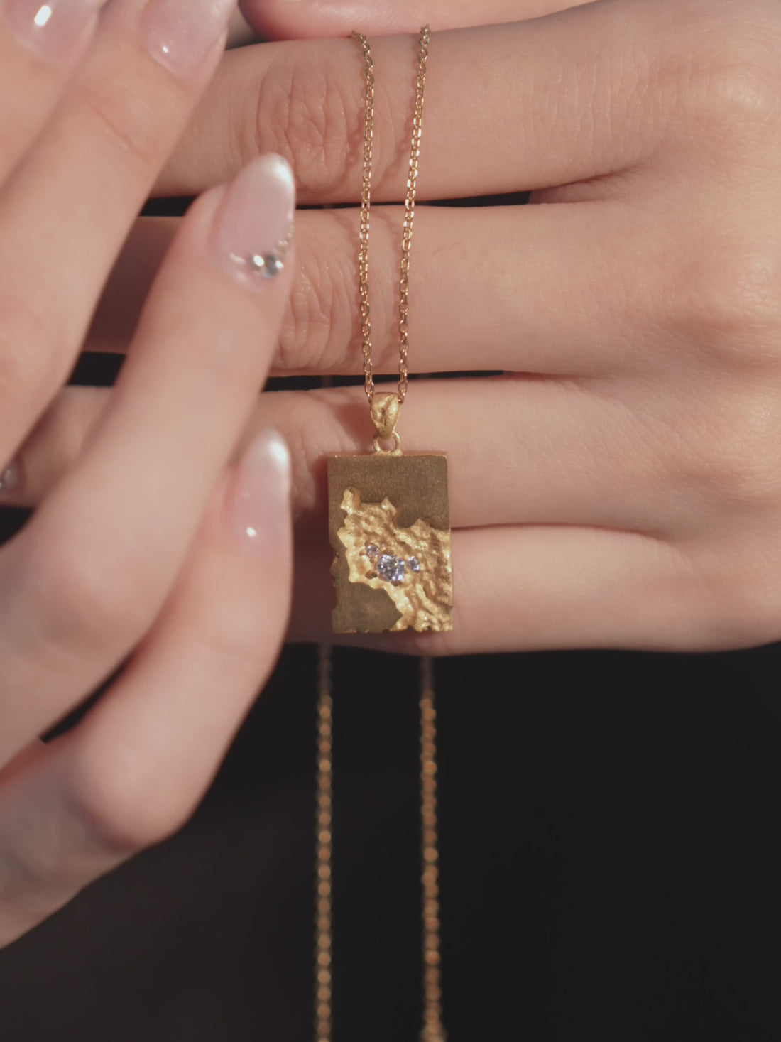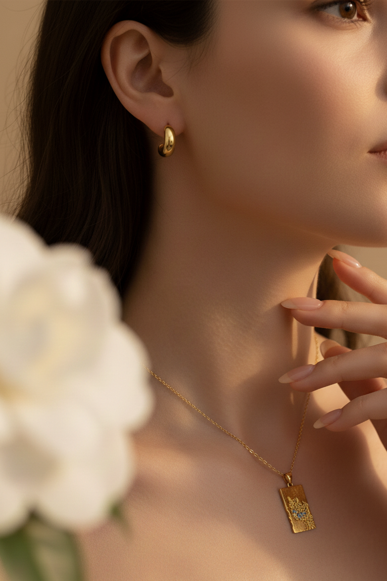 Inspired by the quiet glow of time-worn stardust, this pendant blends brushed and hammered textures to create a natural, weathered shine. The rectangular silhouette feels modern yet organic, making it an effortless statement for everyday style.