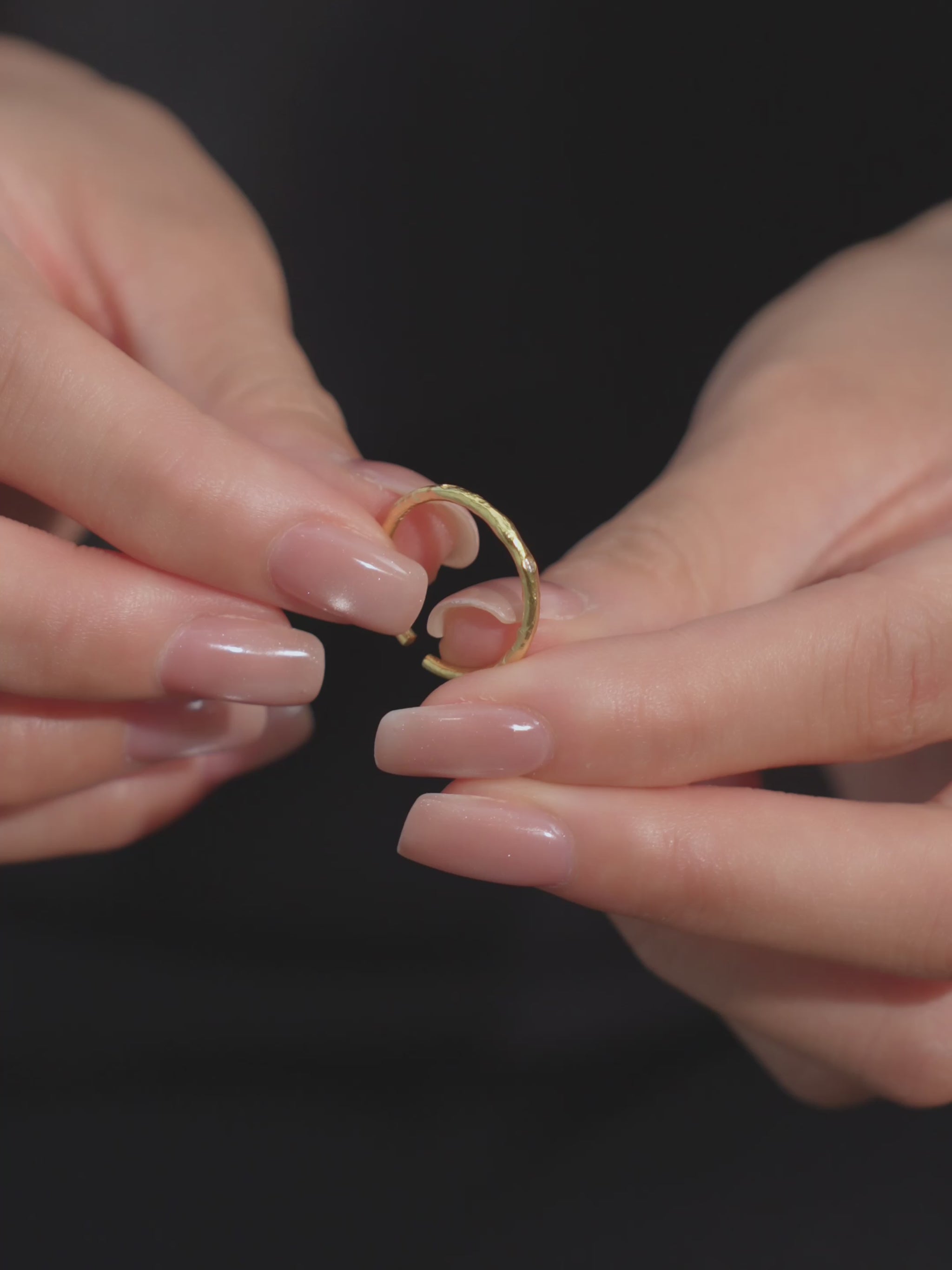 Inspired by the soft twinkle of distant starlight, this ring features an airy, free-form silhouette with a subtle hollow design. Brushed and polished textures shift gently under the light, creating a quiet, refined glow. Available in two styles, each offering a different sense of movement and balance.