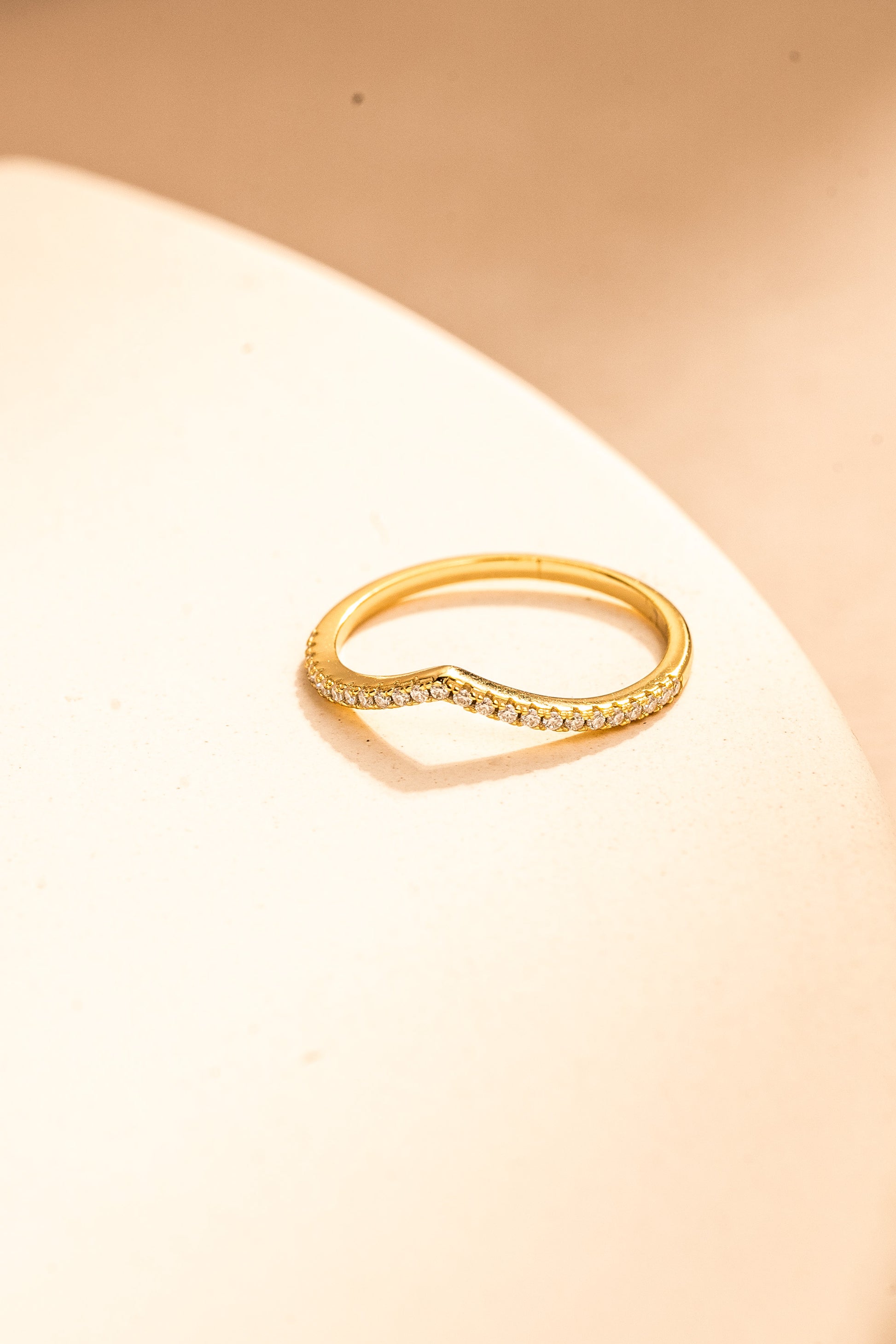 Inspired by the undulating curves of mountain ranges, this ring transforms nature's silhouette into a sleek V-shaped band, embellished with shimmering zirconia like stars atop peaks—subtle yet exquisite.